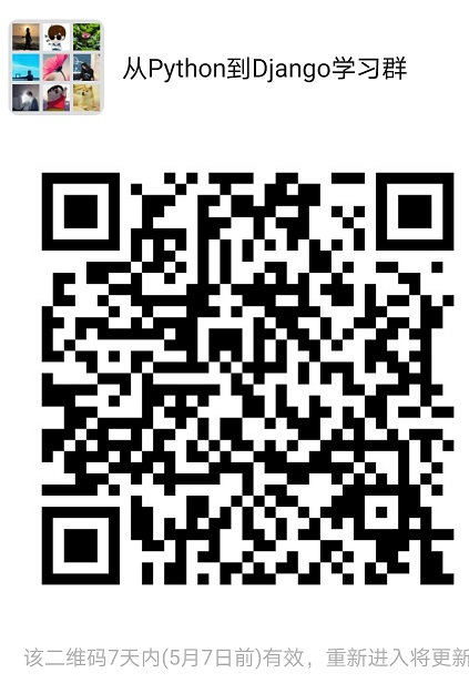 更多关于Python以及Django的讨论,尤其是使用Django开发微信相关应用的技术,请使用微信扫描二维码加群。